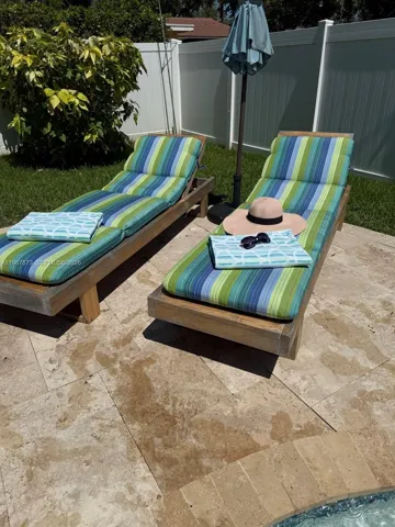 Interior highlights include an updated bathroom, generous wall-to-wall closets, new interior doors, porcelain tile and travertine flooring, and a separate laundry area for added convenience.