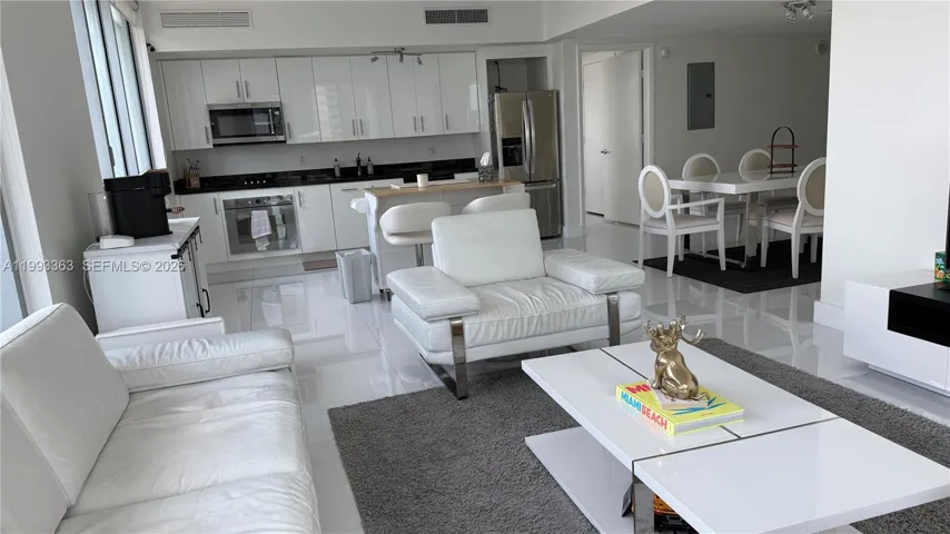 The spacious primary suite includes a walk-in closet, and the private balcony offers breathtaking views and beautiful Miami sunsets. Additional features include in-unit washer and dryer, generous storage space, and assigned parking.