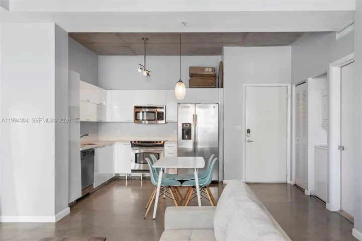 Sophisticated urban loft featuring an open-concept layout, industrial-style design, and abundant natural light. This unique dual-sleeping configuration includes a primary bedroom and an additional Murphy bed, providing flexibility.