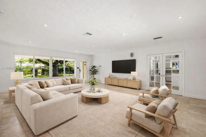 Welcome to this exceptional 4 bedrooms 3 baths Pinecrest residence, offering timeless appeal and impeccable maintenance behind private gates on an expansive 37,461 SF lot. A grand circular driveway sets the stage for a light-filled interior featuring formal living, dining, and family rooms designed for both elegant entertaining and everyday comfort.The beautifully appointed kitchen showcases a central island and seamlessly connects to a covered outdoor terrace- ideal for effortless indoor-outdoor living. The spacious primary suite is a true retreat, complete with a well-appointed bath and a large custom walk-in closet. Step outside to your private backyard oasis, where an inviting pool and generous green space provide the perfect setting for relaxation, recreation, or entertaining. A sizable laundry room is conveniently located just off the kitchen, while a versatile additional room on the opposite wing offers flexibility as in-law quarters, a home office, or playroom. Additional highlights include a whole house generator and an unbeatable location just minutes from top-rated schools, parks, and amenities. Move-in ready and situated in one of Pinecrest’s most desirable neighborhoods – this is a rare opportunity not to be missed.