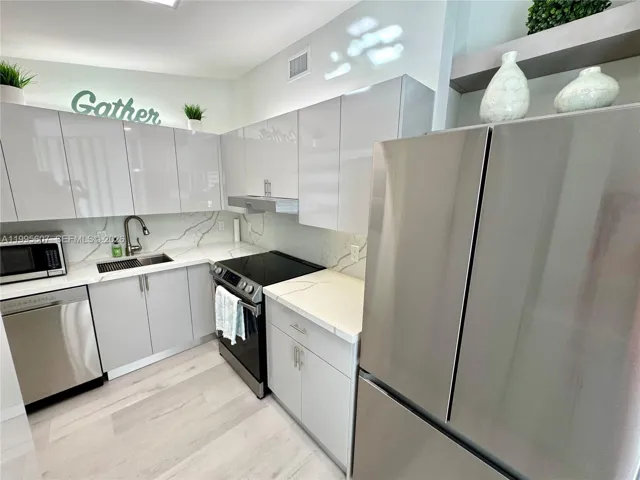 Impact glass on front windows, waterproof vinyl flooring. Kitchen w new tops & SS appliances.