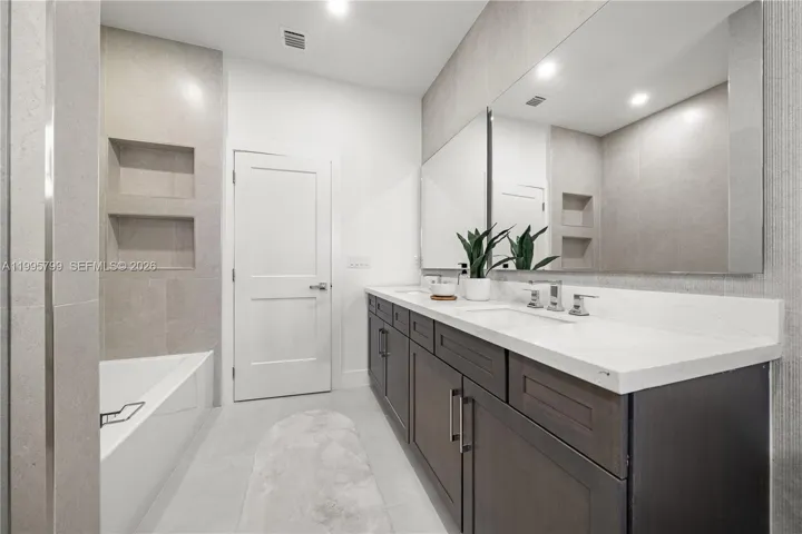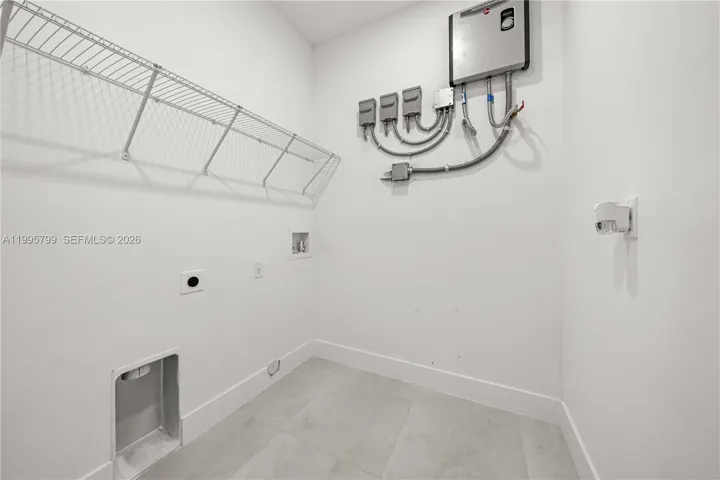24×48 porcelain tile throughout, impact windows with custom blinds, and a tankless water heater for added efficiency.