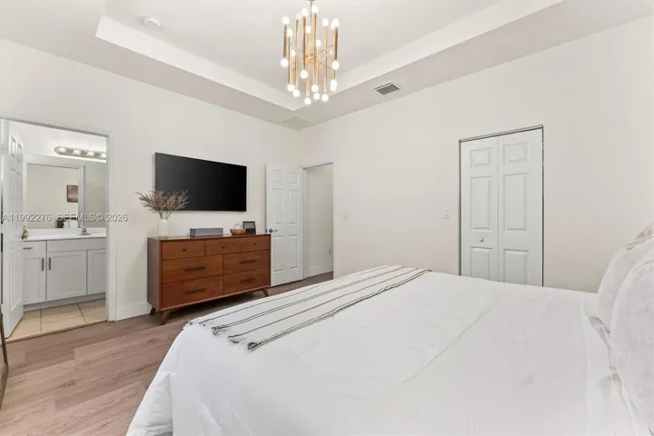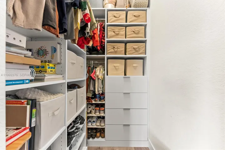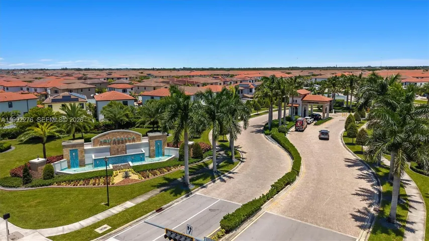 OPEN HOUSE SAT 12-3PM GATE CODE 71578- Step into DESIGNER-UPGRADED living in one of Aquabella’s most striking townhomes currently available, where every finish and detail was thoughtfully picked! This elegantly remodeled 3-bed, 2.5-bath townhome is move-in ready, featuring fresh interior paint, hurricane impact doors, modern wood flooring throughout with no carpet, a custom modern stair railing, recessed lighting, zebra blinds, & an upgraded first-floor powder room. A stunning built-in fireplace wall unit welcomes you and sets the tone for the warm, open-concept living space. The living & dining area flows into a stunning kitchen with high-end two-tone cabinetry and upgraded Frigidaire Gallery appliances, plus an additional family room. West-facing exposure fills the home with natural light throughout the day! Enjoy a private oversized patio finished with artificial turf. The generously sized primary suite offers a comfortable retreat, while both the primary & second bedrooms feature large walk-in closets. All rooms are fit with custom built-ins closets. Additional features include: water filtration system, washer/dryer, Ring door camera/alarm system, & AT&T internet is included with the HOA. Two assigned parking spaces plus guest parking conveniently located across the home. Resort-style amenities include 2 clubhouses, pools, gyms, splash zone, parks, gated entrances & year-round community events. This is a fee simple townhome w/ flexible financing including 3.5% or 5% down.