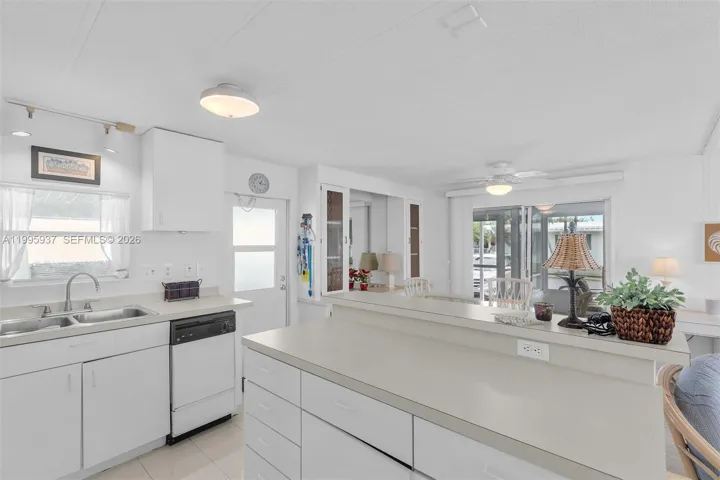 An open-concept kitchen and living area create a welcoming central hub, highlighted by double sliding doors that lead to an air-conditioned Florida room–perfect for morning coffee or relaxed evenings entertaining friends.