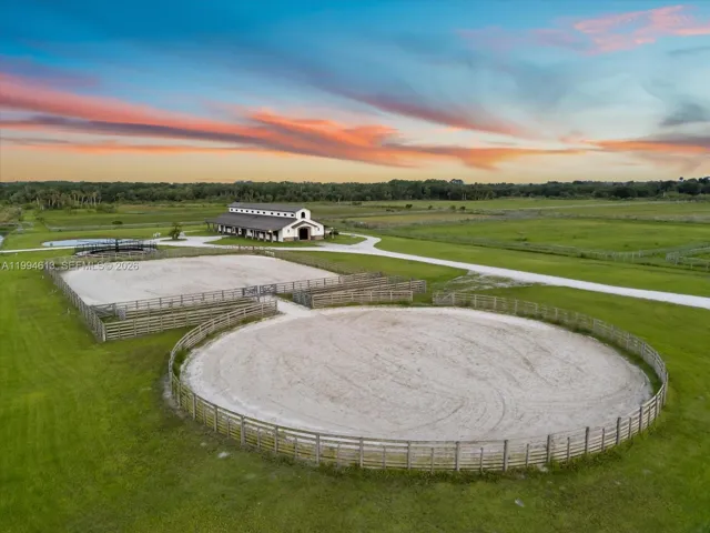 La Potencia II, an awe-inspiring lifestyle equestrian and hunting estate built in 2018 on near 75 acres in Port St. Lucie. Former Mets baseball star Céspedes built this 11,189 sq foot home, with amenity buildings total area is 31,056 square feet. Featuring 6 bed, 6 bath, and 3 half bath, soaring volume ceilings, a gourmet kitchen with cooking island, and expansive entertaining areas. Outdoors a 40×20 heated pool, spa, screened patio, and lush grounds create a private resort-style oasis. This modern home will keep you entertained all year long with a baseball batting cage, game processing room, stable for 12 horses, office, horse training yards. This property is near spring baseball training grounds. As part of the equestrian and hunting estate there is additional adjacent land available, near 304 acres to ride your horses or go hunting for wild boar and other game, and priced at $13,500,000.