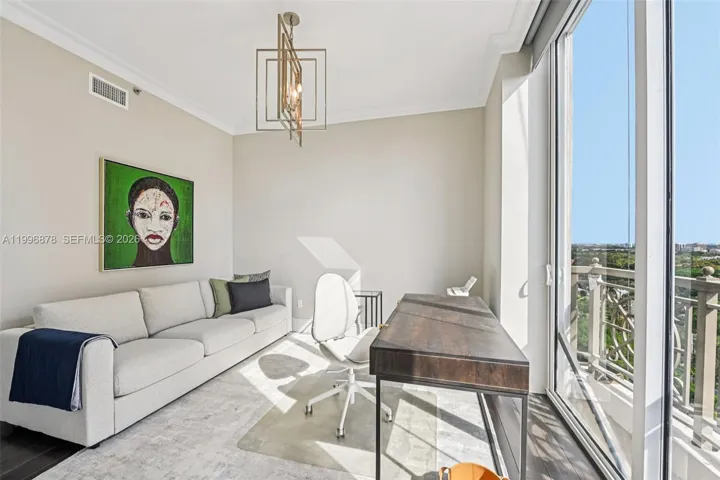 Very rarely available expansive 3-bedroom fully furnished residence at Gables on the Green. One bedroom is currently used as a home office or media room, offering flexibility to suit your lifestyle. Impeccably maintained and beautifully updated, this bright unit features a private elevator entry, a spacious layout, and a large balcony with breathtaking views of the Granada Golf Course and Coral Gables skyline—perfect for entertaining. Enjoy marble and cherry wood floors, floor-to-ceiling windows, custom closets, and a generous laundry room with service entrance. **Includes 2 covered parking spaces. Full-service building with attended lobby, pool, gym, and more. Prime location just steps from Miracle Mile, top restaurants, and minutes to the Biltmore, University of Miami, and MIA.