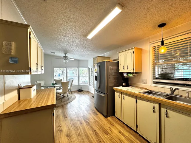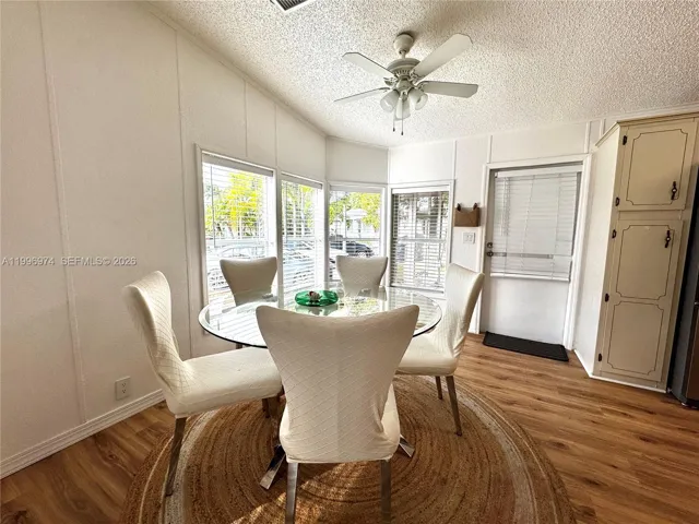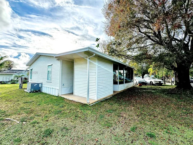 Bright and well-maintained 2-bedroom, 2-bath mobile home offering a bright and open layout with abundant natural light. Spacious living area with updated flooring throughout. Functional kitchen with ample cabinet space and stainless steel appliances. Dining area features beautiful bay-style windows, creating a warm and inviting atmosphere. Enjoy a large screened-in porch and covered outdoor area, perfect for relaxing or entertaining. Extended driveway provides ample parking space. Property sits on a solid concrete slab and features aluminum siding and skirting. A/C unit installed approximately 2013 with updated R-410A refrigerant. Quiet and well-maintained surroundings.