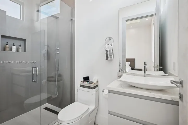 Amazing Location Walking distance to the Heart of Jupiter Beaches. Two Master King Bed Suites with Spa inspired private bathrooms. Designer Furnished with Berhardt, luxury mattresses and bedding with European furnishings. Superb technology with 8k Samsung televisions, smart home system lighting, alarm, camera and AC. Proper Elevator and billiard table. 26 ft. high living room ceiling. 50ft long heated, salt water pool-jacuzzi. Oversized windows provide amazing panoramic sky views. Chef Thermador appliances. 12 Ft Ceilings throughout. Gaze sunsets from 400 sq ft roof deck. Full House Generator. Private and peaceful tree lined dead end street. The quality of life is unparalleled.