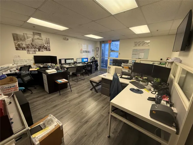 Office-Warehouse combination with a a total square footage of 1,650 SF, composed of: 1,050 SF of Warehouse Space, 300 SF Office Space & 300 SF Mezzanine with concrete floors, the mezzanine works great for additional storage space. 20 ft. high ceilings, 12 ft. high street front loading overhead door. 2 assigned parking spaces + guest parking. Rent includes water & sewer, structure insurance, waste, management fees & common areas. Built in 2010, West Airport Palms has recently been painted and security cameras have been installed around the complex. First month & 2 security deposits required. Best location, less than 1 mile to Palmetto Expwy (SR 826), 2 miles to Dolphin Expwy (SR 836), and minutes to Miami Int’l Airport. Tenant in place until April 30, 2026