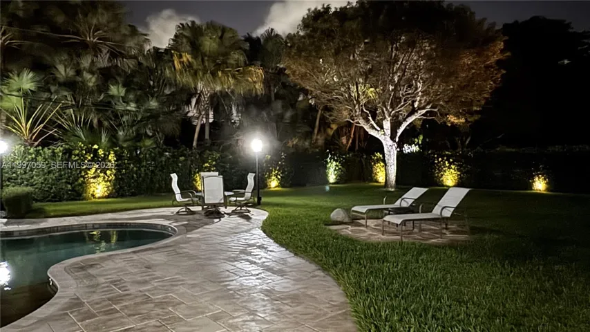 YOUR VERY OWN OUTDOOR PARADISE BOASTING OVERSIZED POOL AND COVERED PATIO. LUSH TROPICAL LANDSCAPING. WELL DESIGNED AND FUNCTIONAL OPEN FLOOR PLAN. LARGE CHEF’S KITCHEN WITH VIKING GAS STOVE, ALL WOOD CABINETRY AND FOOD PREPARATION ISLAND. DOUBLE DOOR ENTRY INTO