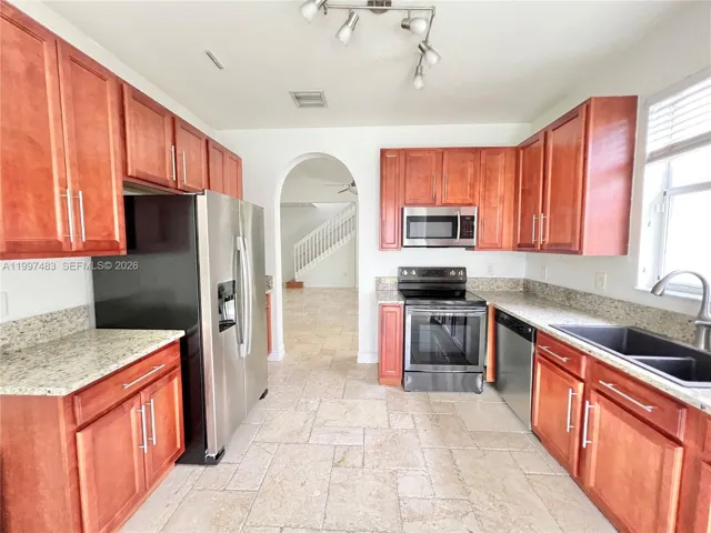 Truly a Gem, Beautiful Italian Tile to appreciate! Barrel Tile Two Story Roof with 3 bedroom and 2 full bath and 1 half bath with A/C in 2 car garage. Updated granite kitchen counter with eat in area, Large Master Bedroom with walk in closet on 1st floor, double sink bathroom, remaining bedrooms and bathroom upstairs. Gated Community with Pool and Clubhouse. Partial fenced corner lot for more yard space! Close to Hospital, Shopping, Restaurants, Schools, Fl Turnpike and easy access to the Florida Keys!