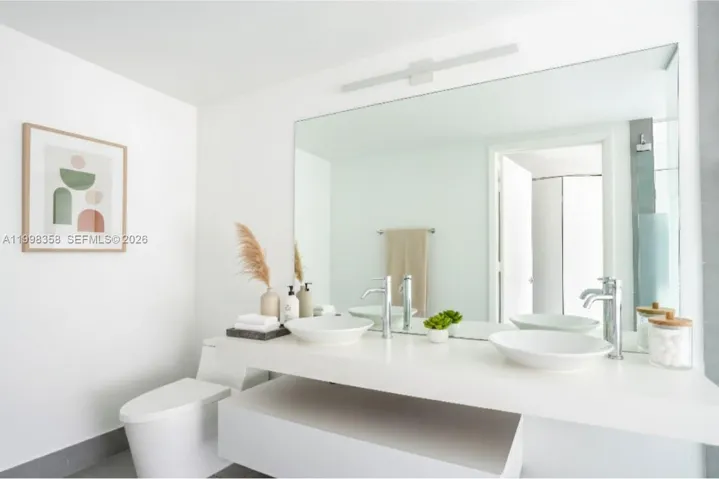 Spectacular 2-bedroom, 2-bathroom apartment in Mint, on the 35th floor, with views of the Miami River, Brickell, and Brickell City Centre. The split floor plan features a sleek black kitchen against a modern white backdrop; a virtual rendering has been added to showcase its potential. The owner is offering $10,000 in credit toward design, furnishings, or closing costs. This luxury building boasts an impressive lobby, fitness center, swimming pools, and a children’s play area. Ideally located with easy access to Downtown and Brickell. Adjacent to the building, the new Faena project will transform the entrance, bringing exclusive restaurants and shops, making this residence a unique investment and an unparalleled lifestyle.