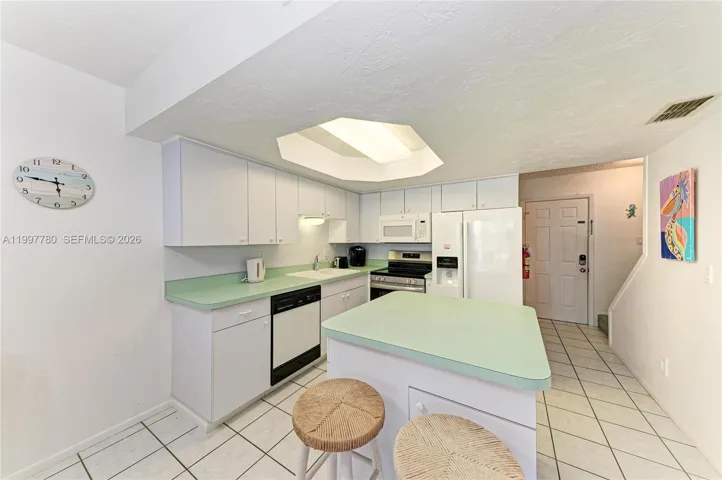 Turn-key furnished 2BD/2BA condo located directly across the street from the white sandy beaches of Anna Maria Island in Holmes Beach. This 900 sq ft unit offers a desirable two-level layout with living areas on the main level and bedrooms upstairs, each with its own private balcony. Open kitchen with island flows into a bright living space. Ceramic tile flooring throughout main areas. Community features a recently remodeled pool and fenced green area. Ideally located near restaurants, grocery stores, pharmacy, and shopping. Short-term rentals allowed, making this an excellent income-producing opportunity or perfect island getaway. Enjoy the charm of Anna Maria Island, known for its beautiful sunsets and relaxed coastal atmosphere, offering a wonderful setting to unwind and spend quality time by the beach.