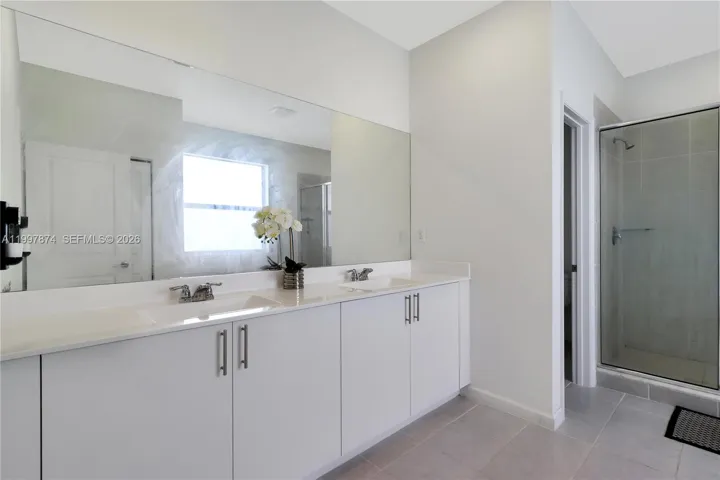 Experience modern luxury in this stunning, newly constructed 2024 residence located in the heart of Homestead. This home is a showcase of contemporary design, featuring sleek marble floors, elegant recessed lighting, and stylish modern light fixtures throughout. The gourmet kitchen is a chef’s dream, anchored by premium quartz countertops, while the main living areas are elevated by a sophisticated accent wall. For ultimate peace of mind and energy efficiency, the home is fully equipped with impact-resistant windows and doors, complemented by chic zebra blinds for perfect light control. The thoughtfully designed floor plan offers versatility and comfort, including a convenient first-floor bedroom and full bath, perfect for guests or an office. Upstairs, the sprawling primary suite serves as a true sanctuary with architectural tray ceilings, while a second spacious bedroom also features its own private en-suite bathroom. Practicality meets style with a three-car garage, providing ample storage and parking. Outside, the property sits on a massive lot offering a sprawling backyard with limitless potential—perfect for those dreaming of designing a custom pool, lush tropical gardens, or a private orchard of fruit trees. This turn-key masterpiece combines high-end finishes with the space and freedom to create your own outdoor oasis.