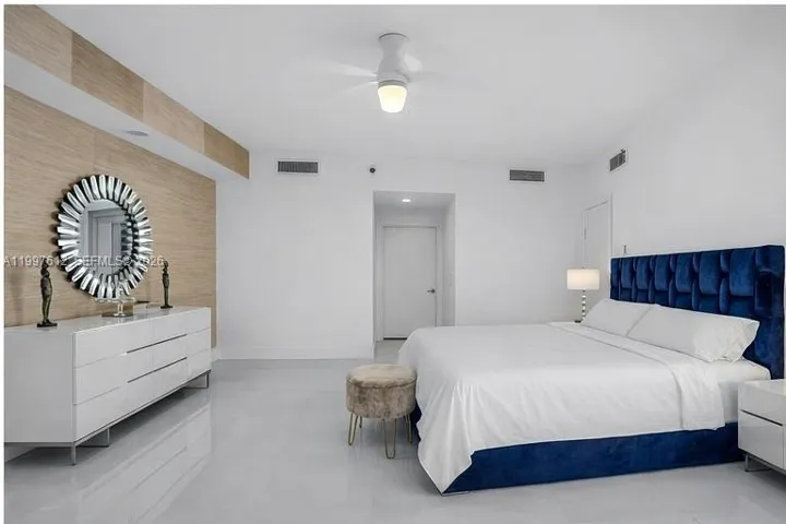 Water views from every room define this stunning 3-bedroom corner residence at Icon Brickell, showcasing panoramic vistas of Biscayne Bay, the Port of Miami, and the city skyline. Upgraded kitchen with premium dark quartz countertops and sleek white porcelain flooring throughout.