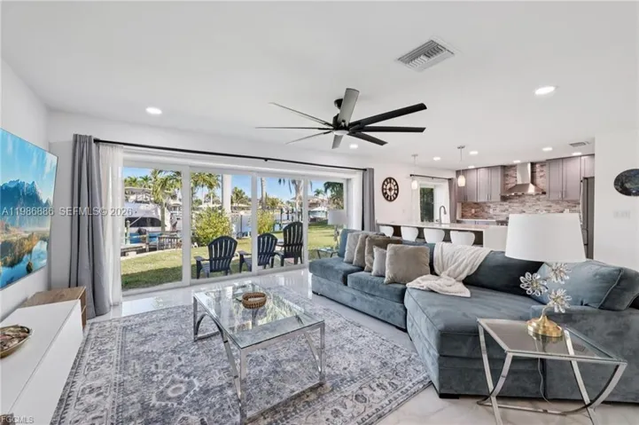 Completely redone—from the roof, interior walls, electrical, plumbing, windows, and air conditioning to the high-end finishes throughout. This impressive residence sits on an oversized lot measuring 98 feet wide by 146 feet deep, along a massive canal over 190 feet wide. Just 2,500 feet to the river, less than half a mile and easy access to open water. The home features four bedrooms. The spacious primary suite offers a large walk-in closet and a spa-like primary bathroom designed for relaxation, featuring a beautifully executed walk-around shower. Interior highlights include recessed LED lighting throughout, all Wi-Fi controlled via Alexa or Google with customizable colors and ambiance, along with quartz countertops and elegant white marble-style flooring. Enjoy seamless indoor-outdoor living with hurricane-impact windows and doors, including pocket sliding glass doors in the kitchen and living area that disappear into the walls. Outside, you’ll find a large concrete dock and deck, and the generous backyard offers ample space to design and add a beautiful custom pool, creating the ultimate waterfront retreat. Ideal as a luxury vacation rental, investment property, or private waterfront retreat. A home just a few houses away is currently on the market for over $3,750,000, underscoring the strength of this investment and the surrounding values