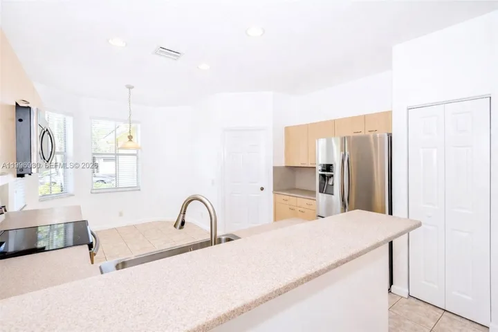 Experience refined living in this beautifully appointed 3-bedroom, 2-bath residence with a 2-car garage, ideally situated in the highly coveted Savanna community of Weston. Designed with comfort and style in mind. The interior showcases neutral tile flooring throughout the main living areas and upgraded laminate wood flooring. The spacious primary suite offers a custom California-style walk-in closet and a tastefully remodeled bathroom.