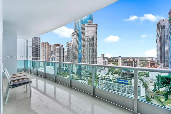 Bright flow-through 3-bed, 3-bath residence (converted from 2-bed + den) offers 1,579 SF. Two terraces: front with direct Biscayne Bay & ocean views, rear with city views & sunsets. 31st floor with unobstructed bay & Downtown skyline. Motorized blackout blinds in bedrooms. Private elevator foyer, 10-ft ceilings, porcelain floors. Newly renovated & fully furnished with high-end designer pieces. Gourmet kitchen features granite counters, Italian cabinetry, Sub-Zero & Miele appliances. Custom millwork & upgraded baths. Front terrace includes dining table for al fresco bay views. Amenities: lap & resort pools with towel service, state-of-the-art gym with spin room, full-service spa (sauna, steam, hot tubs, cold plunges, treatment rooms), screening room, residents’ club room (billiards, piano bar, catering kitchen, library), meditation room, 24-hr concierge, valet & security.