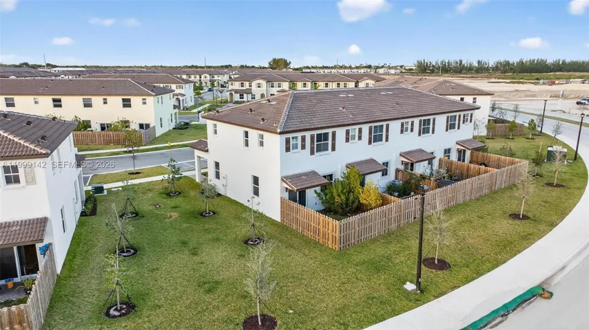 CORNER UNIT – VILLA built by Lennar. Live in this beautiful Bandol Model, two story, 3 beds/3 baths, two Parking Spaces, 1 bedroom/1 full bathroom downstairs, and 2 beds/2 baths upstairs; large walk-in closet in the Master Bedroom. Ceramic tile at first floor and carpet at second floor, Stainless Steel Appliances, washer & dryer inside. Fenced outdoor patio area. Hurricane Panels. WiFi Certified Home Design: video doorbell, invisible smart lock, tankless water heater and more. The Clubhouse will be ready soon and will include pool and gym. In the most desirable Homestead area. Close to Turnpike and Homestead highways.
