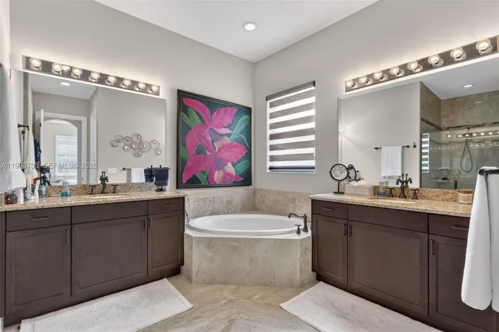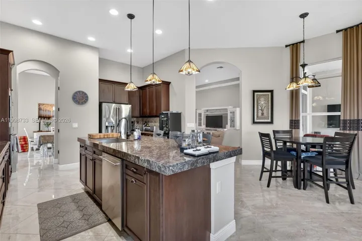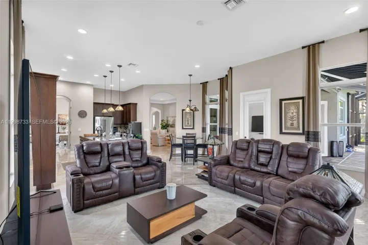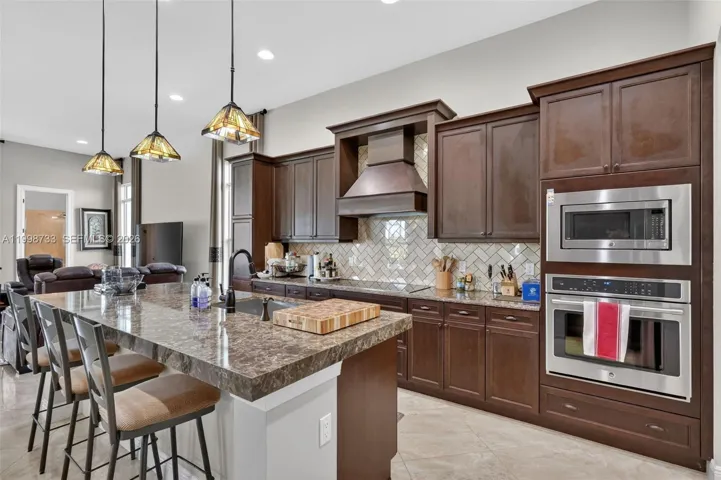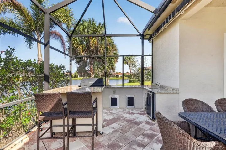 The highlight of this property is the dreamlike patio and outdoor living area. Equipped with a large pool and a modern outdoor kitchen, the expansive lanai offers the perfect setting for al fresco dining and relaxation. The covered patio ensures comfortable outdoor enjoyment, even on sunny days. (2 large motorized retractable awnings!)