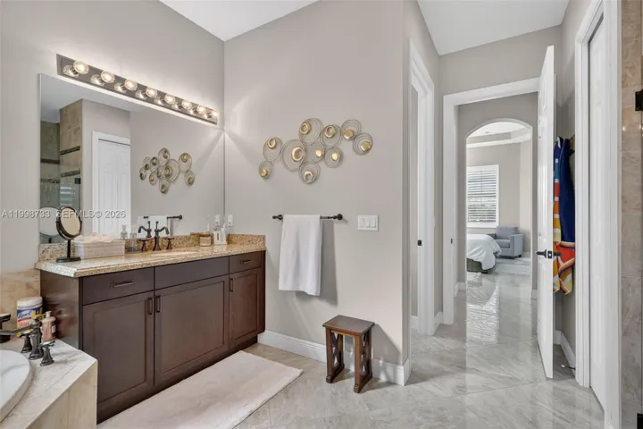 Nestled within the sought-after PGA VERANO community, this approximately 3,143 square foot residence boasts an impressive array of features. The home sits on an oversized, approximately 14,131 square foot waterfront lot, offering ample space and a tranquil setting.