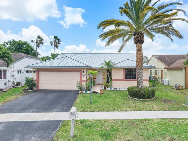 Beautifully maintained home with serene water views and a private backyard oasis featuring a POOL and SPA, perfectly designed for Florida living! Set in a desirable community, this residence offers curb appeal with a landscaped yard and a spacious 2-car garage * Inside, the home showcases high ceilings that enhance natural light and openness. The entire interior (incl. garage and garage floor) has been FRESHLY painted in April 2026! Exterior has been painted in 2025. Thoughtful upgrades include a brand-NEW durable metal ROOF, an updated electrical panel and exterior outlets, and a FULL replacement of the original polybutylene plumbing with modern PVC piping throughout the home, providing long-term peace of mind * The kitchen is equipped with stone counter tops and NEW appliances and offers functionality for everyday cooking and entertaining, while abundant storage throughout the home adds convenience * Step outside to your private tropical retreat, featuring a fully FENCE backyard with mature fruit trees including mango, banana, and green peas, all surrounding the POOL and SPA area with tranquil water views * With a low HOA, X-flood zone (no flood insurance required) and a combination of major system upgrades and outdoor lifestyle features, this home presents a rare opportunity to enjoy the best of Florida living. Schedule your private showing today!