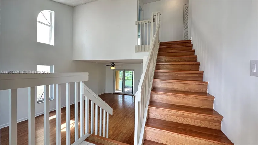Beautifully maintained 4-bedroom, 2.5-bath home located in the heart of Davie. This residence offers full impact windows along with accordion shutters, providing exceptional safety and peace of mind. A grand entry with soaring vaulted ceilings fills the living space with natural light, creating an open and airy atmosphere.The spacious kitchen features granite countertops, stainless steel appliances, and ample cabinetry—perfect for both everyday living and entertaining. All four bedrooms are conveniently located upstairs, offering privacy and functionality.Step outside to a large screened-in patio overlooking the lake—an ideal setting for relaxing, entertaining, and enjoying breathtaking sunset views. Situated in the peaceful Scarborough community, residents enjoy low monthly HOA fees and access to amenities including a pool, spa, playground, tennis courts, and basketball courts. Centrally located with easy access to major highways, shopping, dining, this home truly has it all.