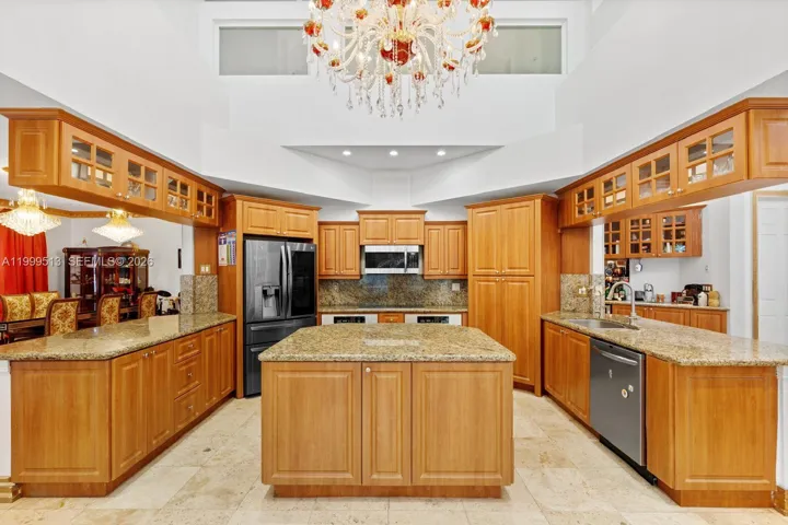 Welcome to this exquisite Mediterranean estate, where elegance meets comfort in a thoughtfully designed 5-bedroom, 4-bath residence featuring two luxurious primary suites. From the moment you enter, you’re greeted by soaring vaulted triple tray ceilings and gleaming marble floors that set the tone for refined living.