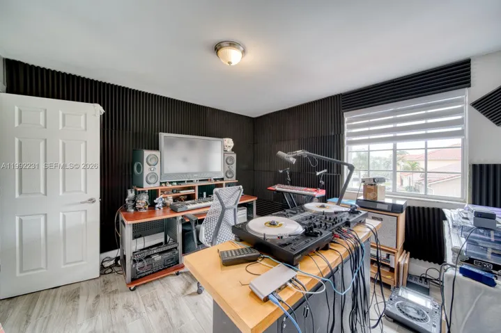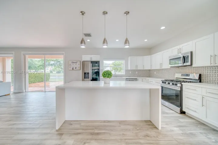 Beautifully updated open-concept and extremely huge home featuring a sleek waterfall island, gas kitchen, and modern finishes throughout. The layout is bright and filled with natural light from ample windows, complemented by high ceilings throughout. The primary suite features vaulted ceilings, plus a den, two oversized walk-in closets, and a modern bathroom with a freestanding tub and walk-in shower. Situated in the exclusive gated community of Jasmine within The Hammocks, this lakefront property offers tranquil water views and a backyard setting that enhances the overall living experience. Enjoy access to A+ rated schools, lush parks, dog parks, and miles of scenic walking paths. A true move-in ready home in a prime location.