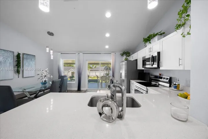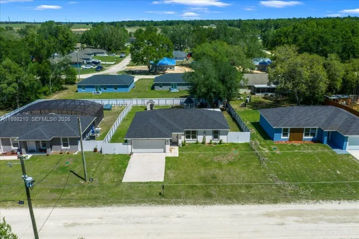 Beautiful 3-bedroom, 2-bathroom home with a 2-car garage located in Rolling Ranch Estates, built in 2024 and move-in ready. This home features a modern open-concept layout with a split floor plan, laminate flooring throughout, vaulted ceilings, and elegant quartz countertops. The spacious kitchen flows seamlessly into the living and dining areas, perfect for everyday living and entertaining. Step outside to a covered lanai with an outdoor kitchen, ideal for enjoying Florida living year-round. Additional upgrades include a whole-house water filtration system, aluminum fencing, and a utility shed for extra storage. Conveniently located just a short drive from Rainbow Springs and approximately 25 minutes from the World Equestrian Center. No HOA and no lease restrictions offer flexibility for homeowners and investors. This address qualify for USDA.
