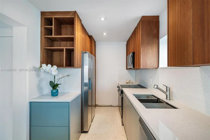 A true hidden gem in Bay Harbor Islands! From sunrise to sunset, enjoy beautiful and serene water views on the inviting terrace of this fully renovated 2BR/2BA corner residence, ideally located in a boutique building. Priced at $495,000, this is your entry into Miami’s waterfront lifestyle. Situated on the 9th floor, the unit offers a peaceful atmosphere, abundant natural light, and an open-concept layout with seamless indoor-outdoor living. It has just been completely remodeled with impact windows and modern, timeless finishes throughout. This well-maintained co-op building offers a quiet, stable residential setting, ideal for primary residents or seasonal owners. Reasonable maintenance fees: $799/month. Amenities include a heated pool and a large waterfront dock. Prime location just blocks from Ruth K. Broad A-rated K-8 school, Bal Harbour beaches, scenic boardwalk, Bal Harbour Shops, and a variety of upscale dining options. Additional features include 2 parking spaces. Please note: no pets and no rentals permitted.