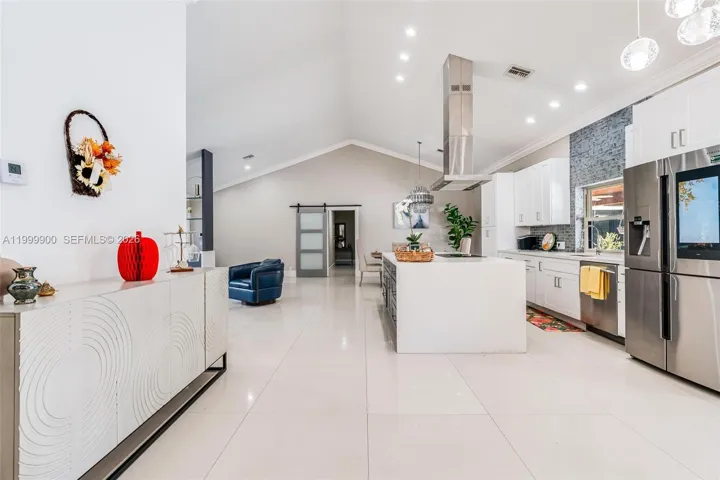 Boasting a 2018 S-tile roof and full impact windows, this home offers both style and peace of mind. The chef-inspired kitchen showcases elegant waterfall quartz countertops, a spacious island, stainless steel appliances, and a designer backsplash. Enjoy oversized porcelain tile flooring in the main living areas, rich wood floors in the bedrooms, and eye-catching shiplap ceilings and accent walls that add warmth and character throughout.