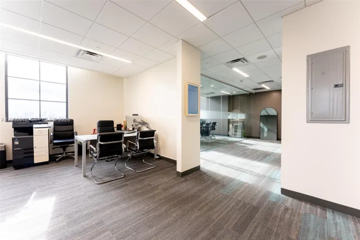 OFIZZINA, located at 1200 Ponce de Leon Blvd., Exceptional opportunity to acquire a combined office space including Units 901 and 902, featuring two separate folio numbers and sold together. Currently configured as one spacious and functional office, ideal for professional use. The unit offers abundant natural light, high ceilings, and a plug-and-play layout. Located in a modern, amenity-rich building featuring rooftop sunset terraces, valet and gated secure parking, electric vehicle charging stations, and ground-floor retail. Additional amenities include a fitness center with Peloton, showers and locker rooms, concierge service, 24-hour and controlled access, security system, reception area, bicycle storage, and more. Available September 2026