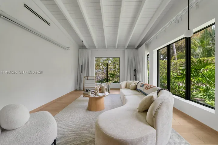 This residence captures a lifestyle that is private, lush, and effortlessly refined. Fully renovated and completely turnkey, the 4BR/4.5BA home showcases exposed wood beams, natural textures, and soft neutral finishes throughout, creating an elegant and cohesive living environment. Open-concept living and kitchen spaces flow seamlessly to the outdoors, offering an ideal setting for both everyday living and entertaining.