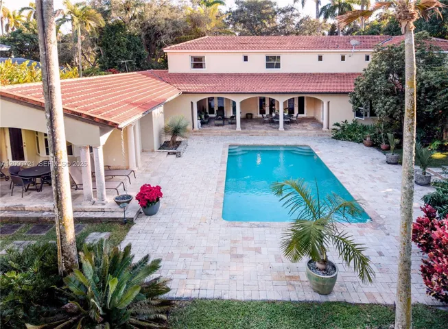 Set in coveted Ponce Davis, this exceptionally maintained estate delivers elevated comfort and peace-of-mind infrastructure. The 6 bedrooms and 6.5 baths home is anchored by it’s ground-floor primary suite complete with a coffee bar, steam room, his-and-hers closets, and a private patio retreat overlooking the salt water pool and lush backyard. The kitchen is a showpiece with top-tier appliances including Sub-Zero, Wolf, Miele, and Viking which flows seamlessly to the family room and easy access to the outdoor patio & summer kitchen. Added peace of mind from the generator supported by 1,000-gallon propane tank. On the near acre property, discover a collector’s tropical garden—a rare sanctuary featuring 100+ varieties of palms and cycads. Complete with a 2-car garage andtimeless Ponce Davis appeal, this is a one-of-a-kind home.