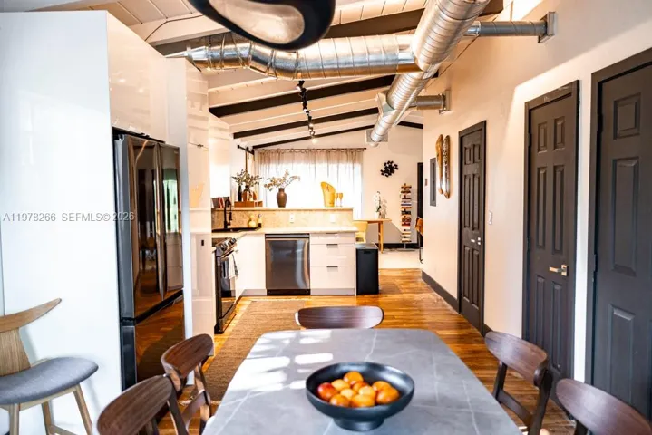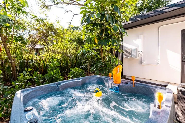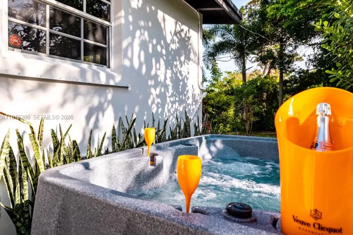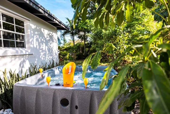 Soho House–inspired private retreat, completely renovated and designer furnished. This 3BD/2BA home features a modern European kitchen with quartzite (natural high-end stone) countertops, and elegant European furnishings throughout. Enjoy a lushly landscaped, fully fenced large backyard with grill, alfresco dining, and 8-person spa, perfect for relaxing or entertaining. Plenty of room for a pool.