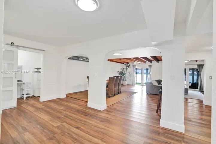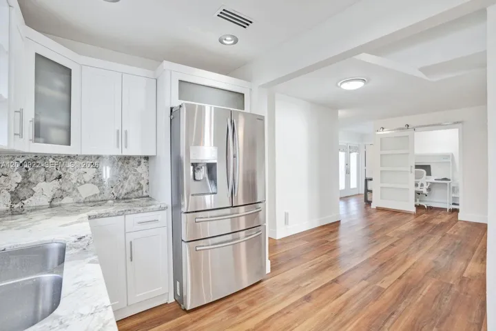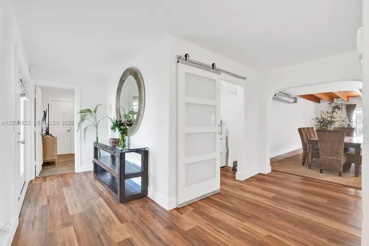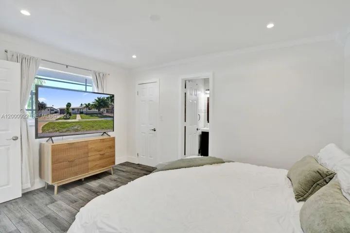 Stunning lakefront views set the stage for this well-cared-for 3-bedroom, 2-bathroom home with a dedicated office, located in the sought-after neighborhood Palm Springs North. An attached unfinished in-law suite addition offers a great opportunity to expand and make the space your own. The home features an updated kitchen and vinyl flooring (2020), along with new baseboards, crown molding, fresh interior and exterior paint, modern lighting, and upgraded insulation (2026). A metal roof (2020) adds long-term durability and value. Step outside to your breezy waterfront escape, complete with a private dock, boat ramp and lift, tiki hut, sandy beach area, and fire pit; ideal for entertaining or unwinding. Enjoy direct access to a lake that allows motorized boats and jet skis.