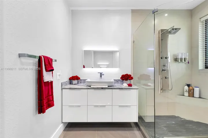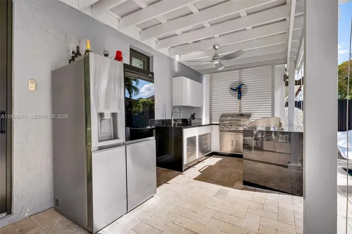 The outdoor space is one of the property’s standout features, boasting a fully renovated terrace, a pool with a dual water system (saltwater and freshwater), and an electric heater—perfect for year-round enjoyment. It also includes a fully equipped outdoor kitchen with a BBQ area, griddle, and cooktop, complemented by elegant pergolas that create the ideal setting for entertaining.