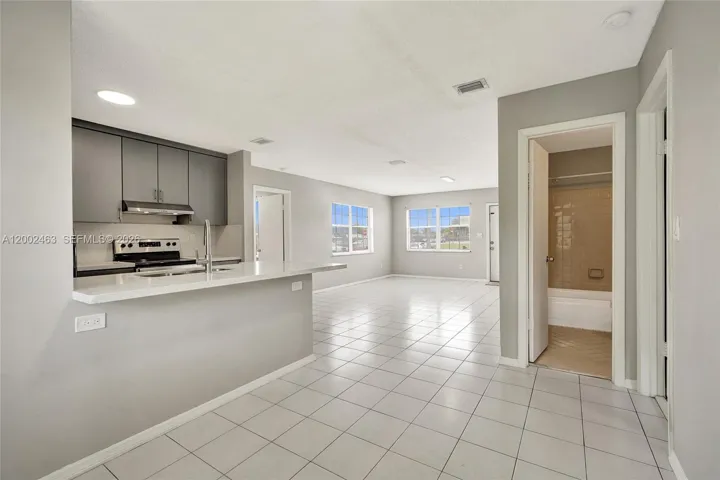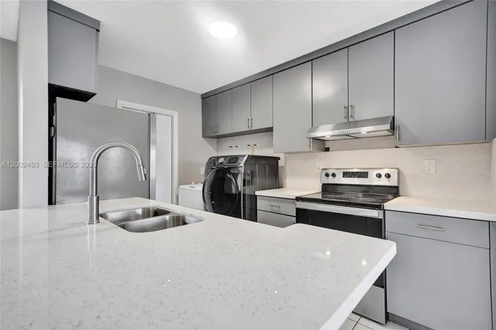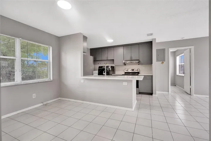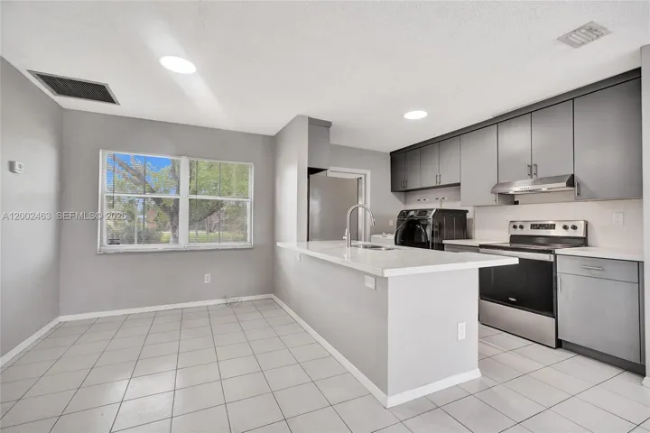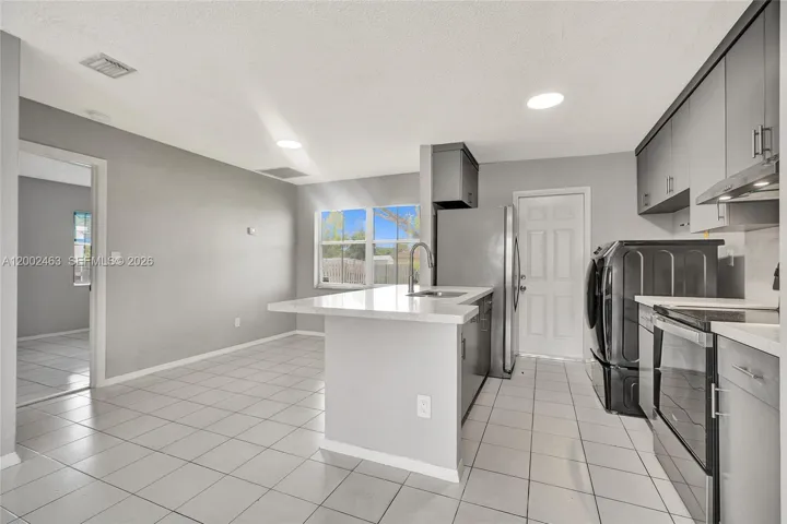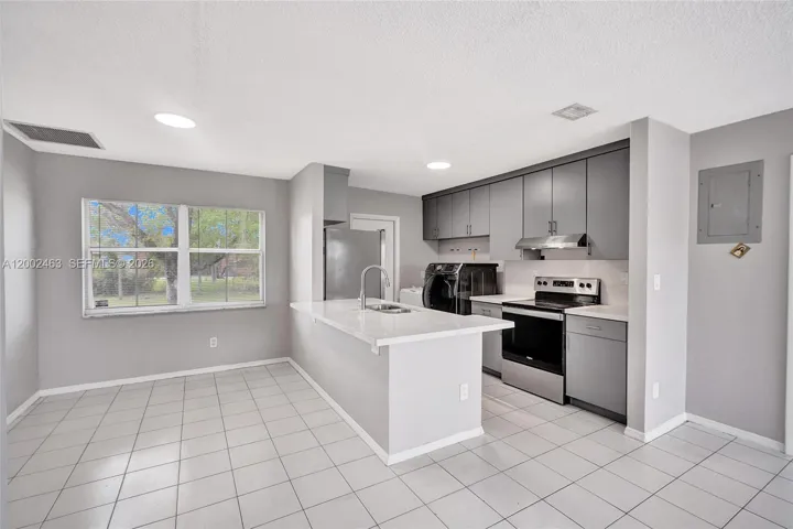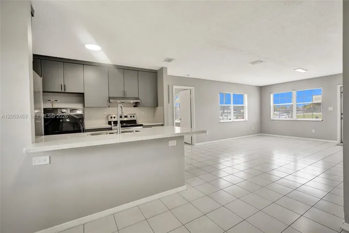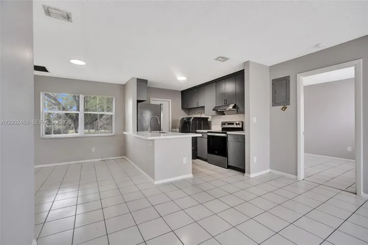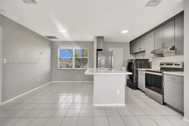 Welcome to 5532 SW 22nd St a bright, move-in ready home on a spacious corner lot in West Park, FL. With 1,189 square feet of stylishly updated living space, this 3-bedroom, 2-bathroom home is the perfect blend of modern design and everyday comfort. Step inside to an open, flowing layout where the living area connects effortlessly to a beautifully renovated kitchen. Featuring quartz countertops, grey shaker cabinets, stainless steel appliances, and a peninsula island ideal for casual dining or entertaining, this kitchen is truly the heart of the home. An in-unit washer and dryer add everyday convenience you’ll appreciate from day one. Large windows fill every room with natural light, while fresh neutral grey walls and gleaming white tile floors throughout give the home a clean, modern feel perfectly suited to the South Florida lifestyle. Both bedrooms are generously sized with great closet space, and the two full bathrooms are well-appointed and ready for you to move right in. Outside, the corner lot offers extra yard space, added privacy, and standout curb appeal, with a concrete driveway and a well-maintained lawn that makes a great first impression. Ideally located in West Park with quick access to major highways, shopping, dining, and more everything you need is just minutes away.