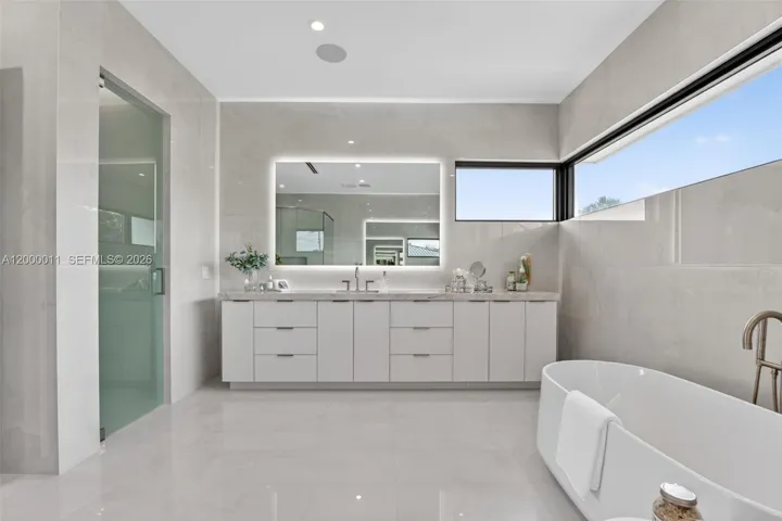 This waterfront residence in prestigious Coral Ridge offers a rare blend of modern design, durability, and wellness-focused living. Built with concrete and steel construction the home features soaring 22-foot ceilings that give an openness to every living space.