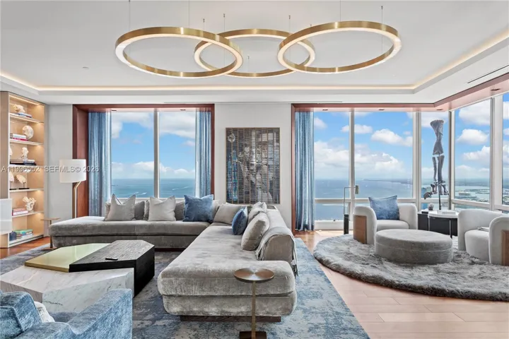Welcome to the sky! On the 70th floor, this nearly 6,000 SF penthouse, designed by Jonathan A Ragusa, unites three units into an extraordinary residence. Breathtaking views of the ocean, skyline, and city set the stage for this impeccable home. Rich in detail, it boasts Cristallo stone, Italian Italcraft cabinetry, and a chef’s kitchen with Wolf and Sub-Zero appliances. Handcrafted Venetian glass light fixtures, bespoke European furnishings, and curated art enhance the interior’s timeless elegance. Smart home automation with Josh AI and Alisse switches seamlessly controls lighting, sound, and shades. Two expansive living areas, a spa-like primary suite, private entry, 4 parking spaces, and 6 Equinox memberships complete this rare and exceptional offering.