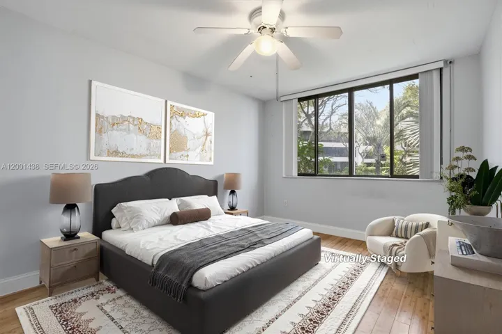 Gated community of Sheridan by the Beach. This spacious first-floor corner residence features 2 bedrooms, 2 full baths, and a wraparound screened porch with hurricane shutters. The split floor plan offers privacy. The primary suite includes a large custom walk-in closet. Washer & Dryer inside the unit, but the condominium also offers an additional laundry room on each floor. Bamboo floors throughout and tile in the kitchen. 1 assigned parking space and ample guest spaces. Resort-style amenities include two heated pools, clubhouses, BBQ areas, fitness center, sauna, and tennis & pickleball courts. Well-managed association with no special assessments. HOA includes cable with one premium channel. 40-year certification completed. Pet-friendly community. No rentals permitted for the first 3 years of ownership. Ideally located east of US-1, just one mile from Hollywood Beach and the Broadwalk, and within minutes of Publix, Walmart, Walgreens, and nearby parks. Mortgage savings may be available for buyers of this listing.