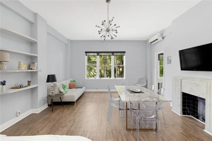 Enjoy stunning water views from this beautifully updated and tastefully furnished oversized studio in the iconic Helen Mar Condo. Soaring 10-foot ceilings and unique architectural charm, including a decorative fireplace, this residence offers a spacious and inviting feel rarely found in a studio. The gorgeous kitchen is outfitted with butcher block countertops, great windows for natural light, and stainless steel appliances, including a gas range. Featuring an open airy layout with stylish wood floors throughout, updated modern bath with seamless glass doors, central A/C and thoughtfully curated furnishings for a turnkey living experience. Bright and sun-filled, this one-of-a-kind unit showcases tranquil water views that create a serene retreat in the heart of Miami Beach. Residents enjoy a dedicated parking lot, lush tropical gardens, a sparkling pool, and a BBQ area—perfect for relaxing or entertaining. Ideally located- just cross the charming footbridge to the beach, or head to Lincoln Road for world-class dining, shopping, and entertainment. Available for annual lease or longer.