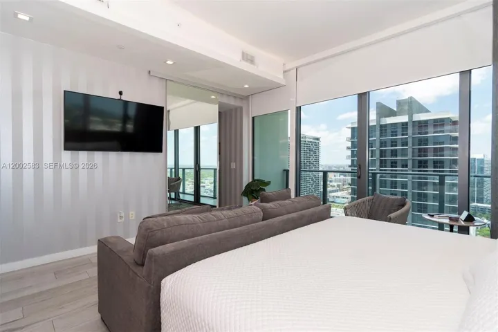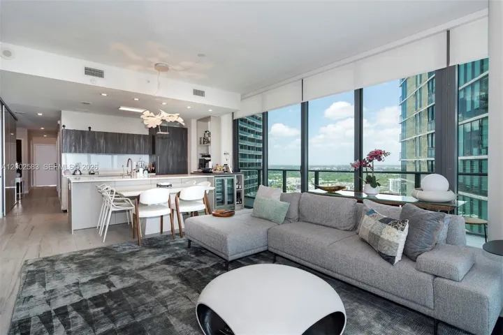 Luxury corner residence at Gran Paraiso with a sprawling wraparound terrace and breathtaking, unobstructed views of Biscayne Bay, the Intracoastal, the ocean and the Miami skyline. Offering 3 bedrooms and 3 baths across 1,649 SF and 2 parking spaces, this high-rise home pairs an open, light-filled layout with a chef’s kitchen featuring a cooking island, and elegant finishes including marble, ceramic and concrete flooring. Enjoy peace of mind with a full-service, secured building (doorman, card-entry and elevator security) plus high-impact windows and doors. Gran Paraiso delivers true resort living: a 2-acre pool deck with cabanas, spa, state-of-the-art fitness center, business center, tennis courts, putting green, and indoor sports amenities including bowling lanes and a golf simulator. Entertain in refined club rooms and lounge areas, store vintages in private wine cellars, or unwind in the cigar lounge with private humidors. Residents also enjoy a private beach club and waterfront dining at Amara at Paraiso by acclaimed chef Michael Schwartz, along with a bayfront park and onsite boat docks and slips. Includes 1 assigned parking space plus guest and valet parking.