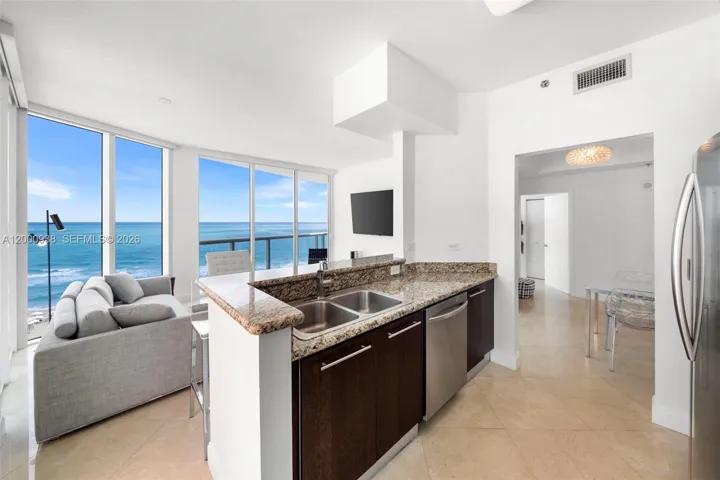 Experience the ultimate beachfront lifestyle at Bel Aire #802, a stunning oceanfront residence directly on the Miami Beach boardwalk. This fully furnished unit offers a seamless blend of luxury and convenience, featuring cool tile flooring and a modern kitchen with a dishwasher, microwave, and full appliance suite. For added comfort, a private washer/dryer is included. The residence is uniquely enhanced by two private balconies, perfect for enjoying both refreshing ocean and city views.