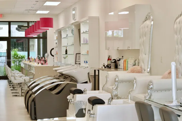 It has 12 beautiful hairdressing chairs, three nail stations, two queen chairs, three shampoo chairs, and a bar. All electrical wiring is individual and up to code. Excellent location, two entrances, two sub-rented salons. Financial information available.
