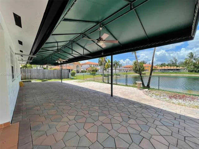 Washer and Dryer, Rear terrace with large extended awning and paved back yard with fabulous lake view and
