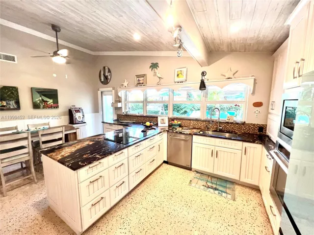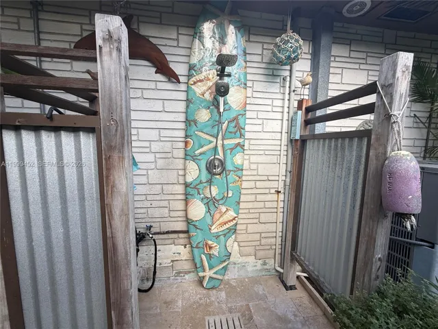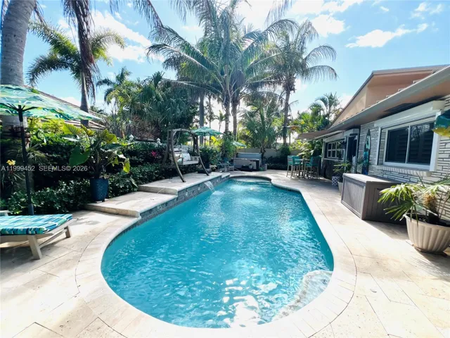 Live the beach life in this inviting 3-bedroom, 2-bath pool home just one block from the ocean in the charming seaside town of Palm Beach Shores located on the South End of Singer Island. This unique residence beautifully blends old Florida character w/modern updates, featuring classic terrazzo floors, upgraded kitchen & renovated bathrooms. Surrounded by lush tropical lighted landscaping, this property offers a private outdoor retreat w/pool, hot tub, outdoor shower & travertine tile throughout the backyard & side yards creating a desirable serene sitting area perfect for enjoying the relaxed coastal lifestyle. Hurricane shutters on all windows & doors provide peace of mind, while a durable metal roof (2019) adds lasting value. Additional features include corner lot, one-car garage & massive circular driveway w/room for multiple vehicles, Livingroom wall-mounted 75″ TV, washer & dryer in garage, Icynene installation (2023) in Livingroom, kitchen, 3rd bedroom/studio & garage, tongue & groove ceiling w/dimmable LED recessed lighting (2023) & MORE. The spacious front yard also offers potential for future expansion. Set within a quaint beach community 10 blocks by 3 blocks, known as “The Best Little Town In Florida,” where you can enjoy sunrises & sunsets, just a few steps to the sand, inlet & Intracoastal Waterway. Close to marinas, restaurants, golf courses, 13 miles to airport, loads of shopping & much more. All sizes & info approx. to be verified by buyer.