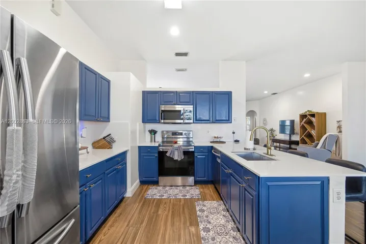 Welcome to this spacious 4-bedroom, 3-bath home located in the highly desirable North Gate at Keys Gate community in Homestead. Offering over 2,000 square feet of living space, this well-maintained residence features a bright, open layout with high ceilings and abundant natural light throughout. The updated kitchen is designed for both everyday living and entertaining, featuring quartz countertops, stainless steel appliances, and ample cabinet space. Beautiful wood-look porcelain flooring adds a modern touch while remaining durable and easy to maintain. The kitchen flows seamlessly into the main living areas, creating a comfortable space for gatherings and daily life. The home sits on one of the larger lots in the neighborhood, offering a generous backyard with plenty of room for outdoor entertaining, gardening, or future customization. A 2-car garage provides additional storage and convenience. Residents of North Gate at Keys Gate enjoy exceptional HOA amenities including an incredible clubhouse with resort-style pool, fitness center, and community activities. The HOA also includes high-speed internet, cable, lawn maintenance, 24-hour security, and exterior painting approximately every seven years, providing convenience and peace of mind. Conveniently located near shopping, dining, schools, and major roadways, this home offers comfortable living in one of Homestead’s most sought-after gated communities.