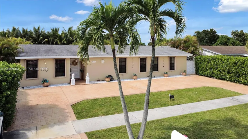 This spacious home sits on an 8,015 sq. ft. lot with lush tropical landscaping surrounding the property, creating a private oasis ideal for relaxing or entertaining. The circular driveway provides ample parking and a grand entrance to the home.